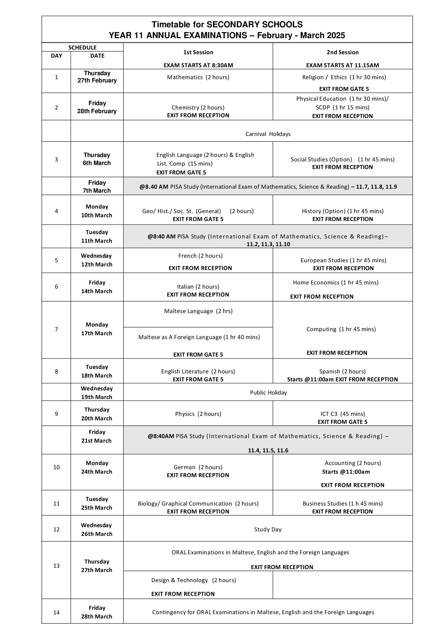 Home » Year 11 Final Exams Timetable 2025